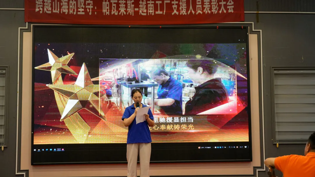 Unable to attend in person, General Manager Liu sent blessings and recognition through a recorded video. In the video, he said with emotion: "The current industry competition is intensifying, compounded by the pressure from trade wars, and the company faces many survival challenges. The decision to lay out the Vietnam factory in advance was precisely to find a way out amid the storm. Now, thanks to everyone's efforts, it has begun to show results and achieved perfect order delivery." He especially emphasized that the support team's efforts laid a solid foundation for the company to withstand pressure and expand overseas markets. In future talent promotions, these key members with overseas support experience will be given priority consideration.